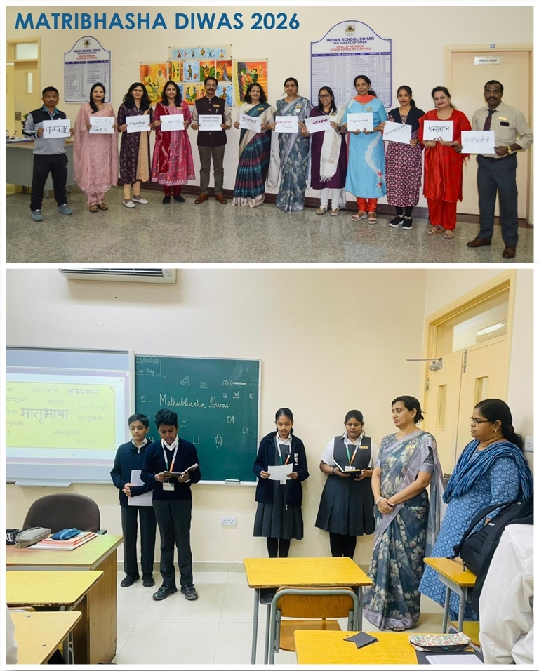 Indian School Sohar observed Matribhasha Diwas (Mother Language Day) on 22nd February, Sunday with great enthusiasm through special class assemblies c