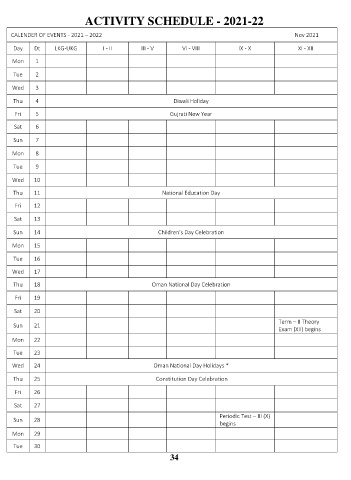 ACTIVITY SCHEDULE - 2021-22